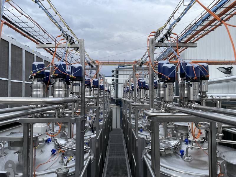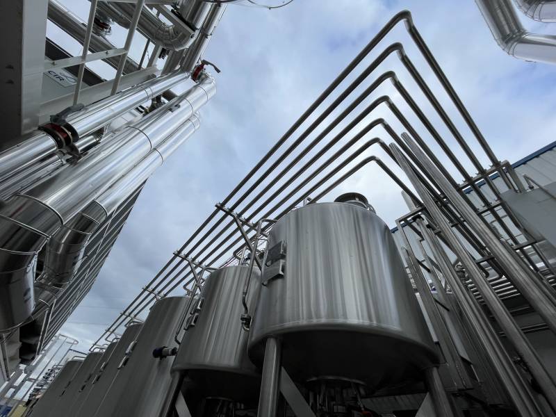 Ce chantier consistait à raccorder le process et la NEP (Nettoyage En Position ou CIP en anglais : Clean In Position) de 14 cuves de maturation en extérieur et 4 cuves de formulation en zone de production. Ainsi qu'un pasto, des freezers et de nombreux tableaux de pontage.
