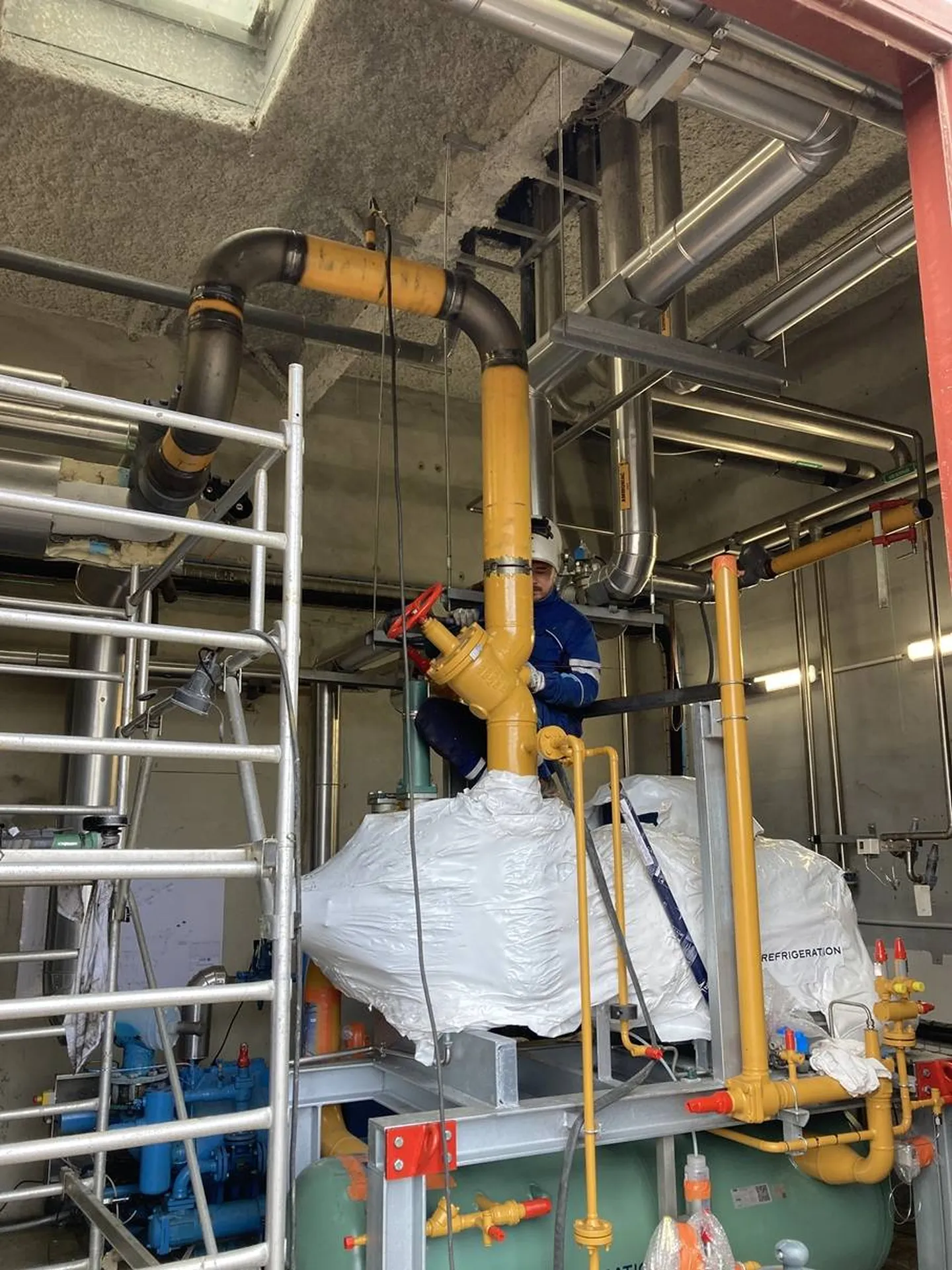 Une fois cette validation obtenue, nous avons établi les plans de fabrication, puis préfabriqué en atelier les tubes de cette installation soumise à la DESP. Le fort DN des tubes la plaçait en catégorie III. Les radios de contrôle ont pu être faites en atelier, réduisant la contrainte que cela occasionne.