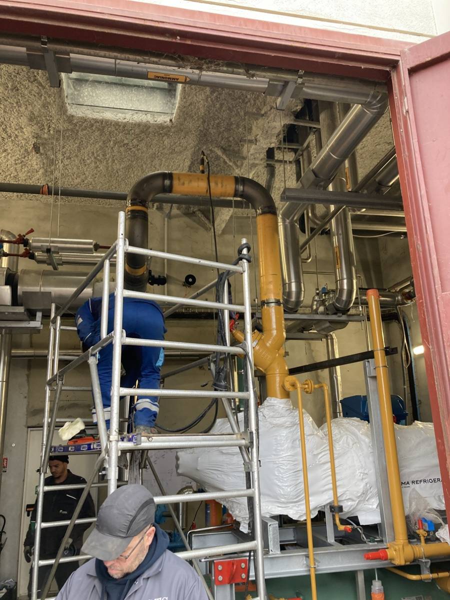 Une fois cette validation obtenue, nous avons établi les plans de fabrication, puis préfabriqué en atelier les tubes de cette installation soumise à la DESP. Le fort DN des tubes la plaçait en catégorie III. Les radios de contrôle ont pu être faites en atelier, réduisant la contrainte que cela occasionne.