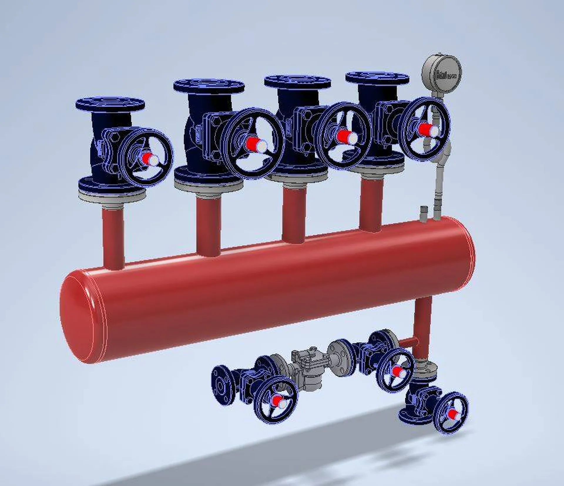 GTS a proposé de mettre en place une nourrice vapeur qui permet de collecter la vapeur produite pour ensuite l'orienter vers les points d'utilisation nécessaires. La nourrice conçue par GTS est équipée de plusieurs vannes ainsi que d'une station de purge pour garantir la bonne qualité de la vapeur et le traitement des condensats.