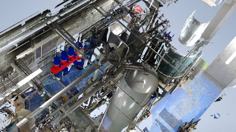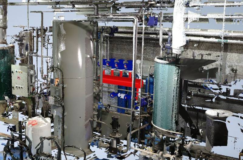 relevé laser chez le client en aquitaine pour numériser la chaufferie vapeur. Cela nous a permis d'implanter le modèle CAO de la nourrice vapeur virtuellement dans le local technique.