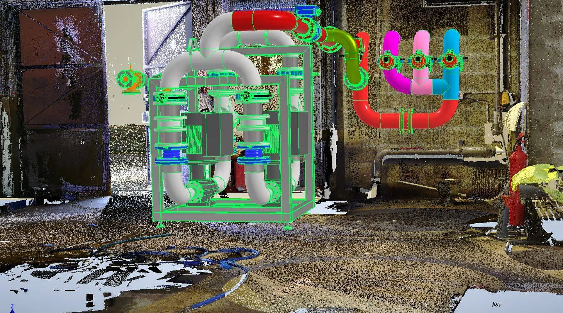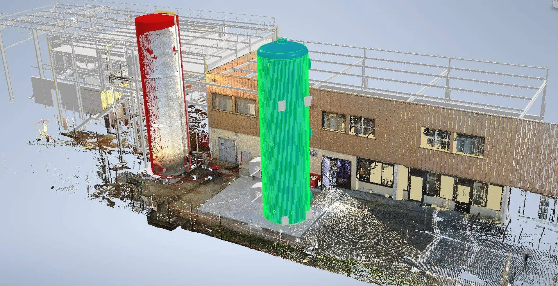 Pour compléter la production d’eau chaude du site de LDC en aquitaine GTS a réalisé un scan laser 3D de l’environnement. Après avoir étudié le PID du skid chaud, GTS l’a conçu en CAO et l’a implanté dans le nuage de points du local technique. Ce skid chaud permet l’optimisation de l’utilisation d’eau chaude de LDC Aquitaine.