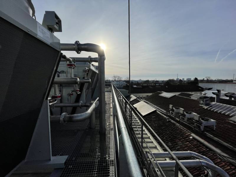 En ce début d'année, nous avons réalisé une boucle de Tichelmann sur la toiture de la Biscuiterie de Pessac pour le compte de Dalkia Froid Solutions.