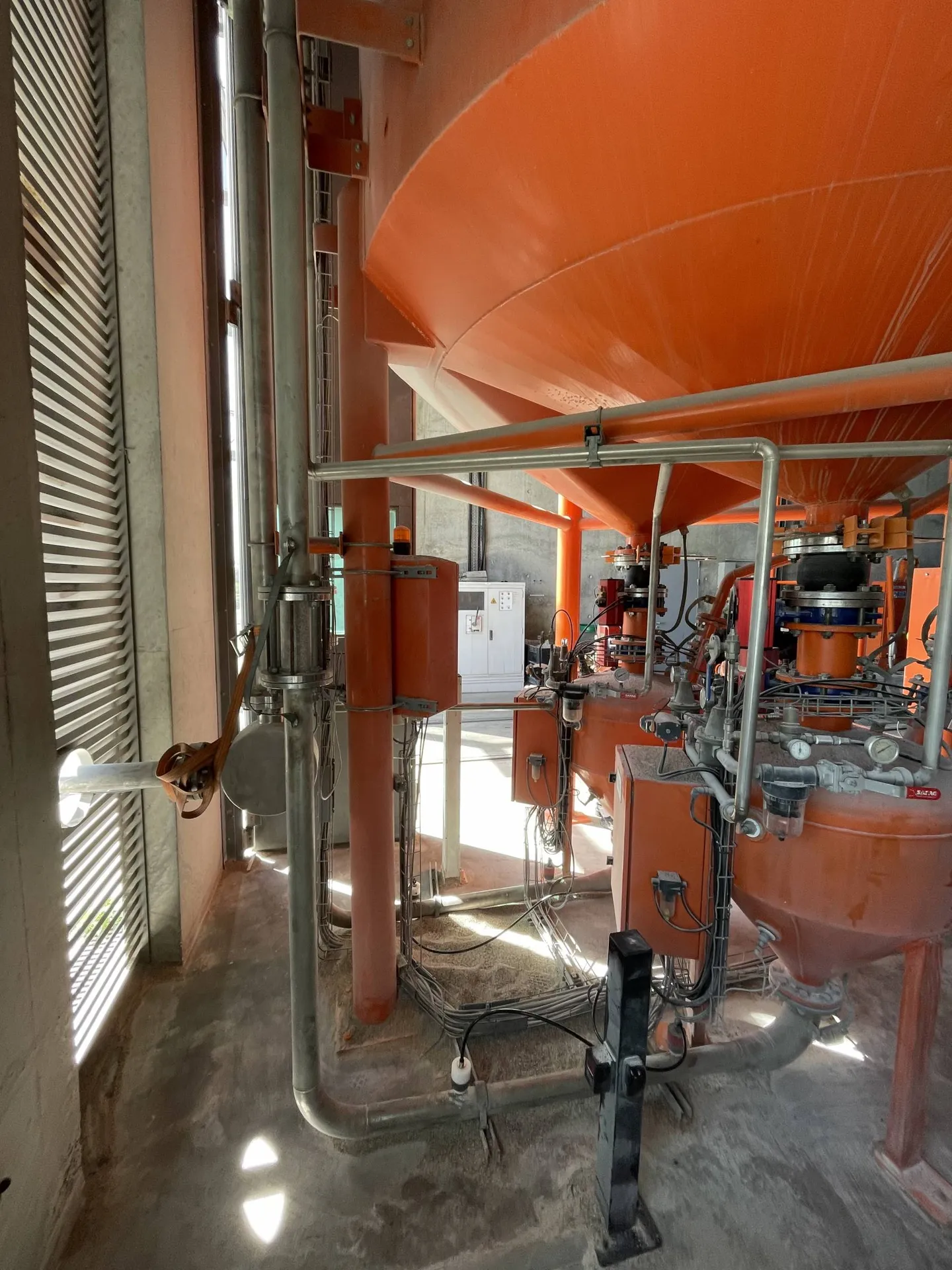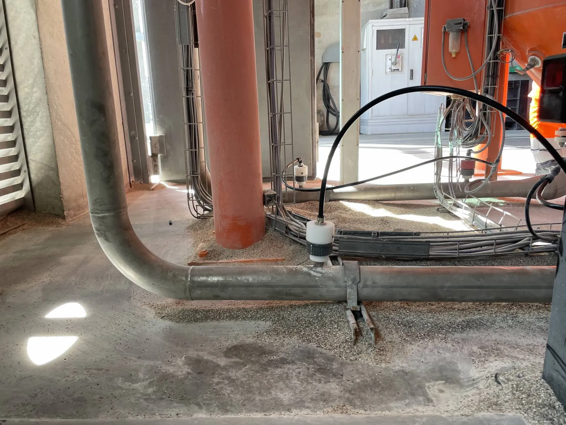 Véhiculer du sable sec n'est pas simple, c'est extrêmement abrasif et ça fini tôt ou tard par percer les tuyauteries. C'est pour cela qu'on utilise de l'inox, plus résistant, mais aussi des épaisseurs importantes. Plusieurs millimètres quand l'épaisseur standard est plutôt de 2mm..