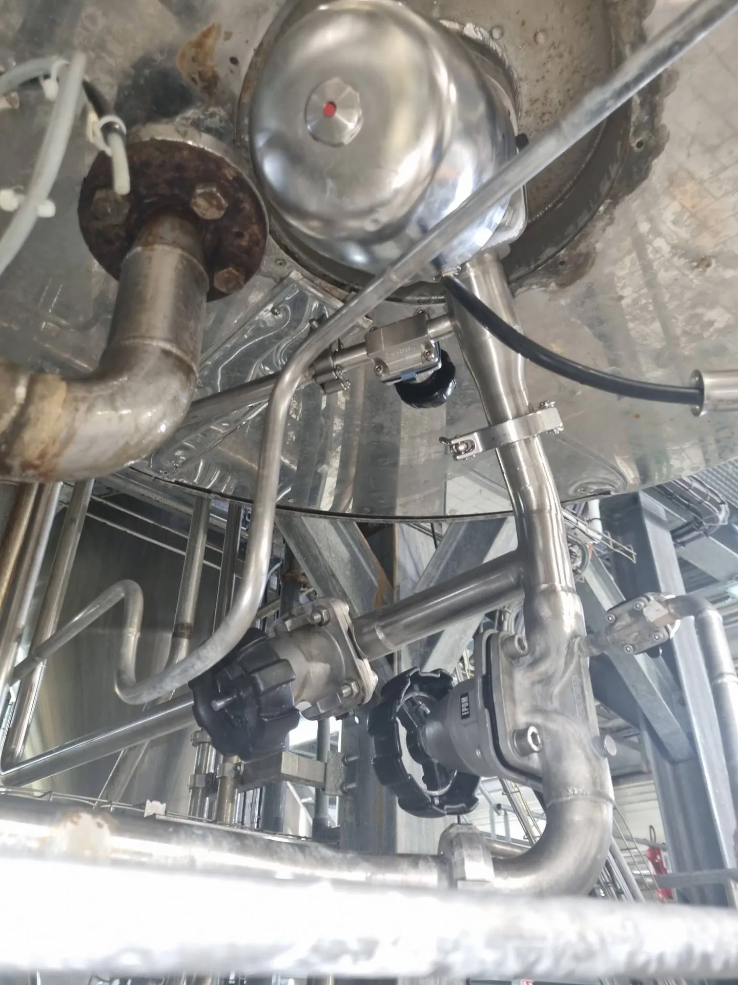 Bien que la zone soit très encombrée, nous avons réussi à modifier le cheminement des réseaux vapeur stériles et de dépotage produits pour effectuer le remplacement des anciennes vannes de fond de cuve des fermenteurs.
