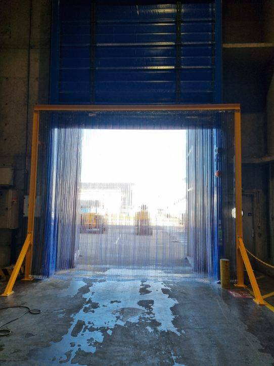 La solution était d’installée une structure métallique en forme de portique, composée des poutrelles et des lanières qui permettent de limiter l’échange thermique avec l’extérieur tout en laissant passer les chariots élévateur.