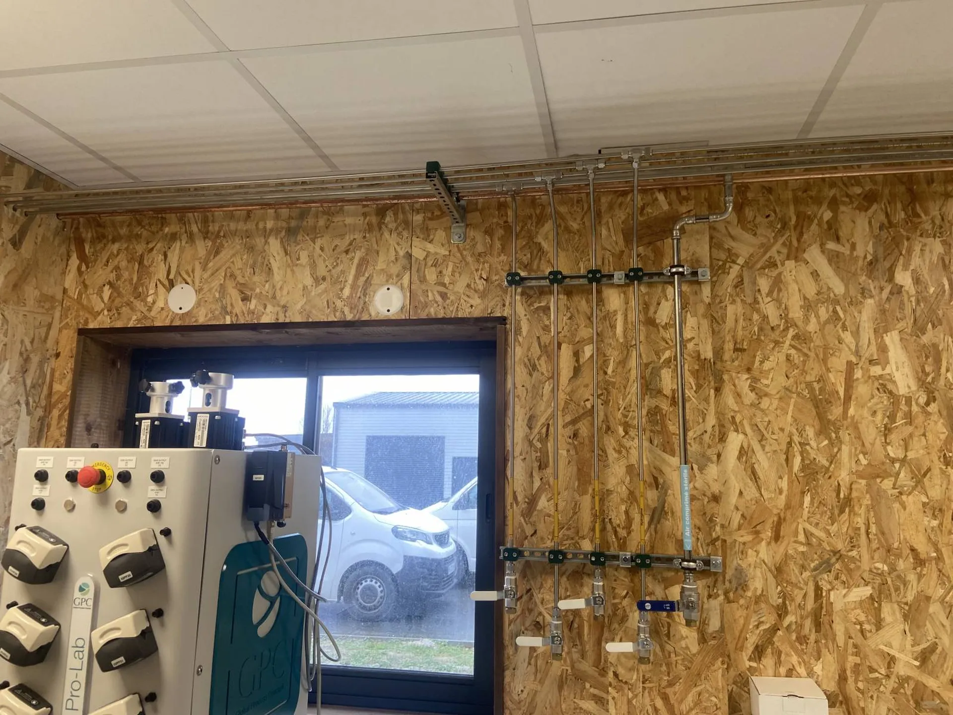 Dans le cadre de ce projet en Gironde, GTS a opté pour une solution en tube cuivre serti pour le propane et des tubes en inox avec des raccords double bague pour le reste des gaz. Avec ce type de raccords, GTS a misé sur le long terme afin de réduire considérablement tout risque de fuite. De plus, grâce à ce type de montage, nous garantissons une maintenance facile sur ces tuyauteries gaz laboratoire.
