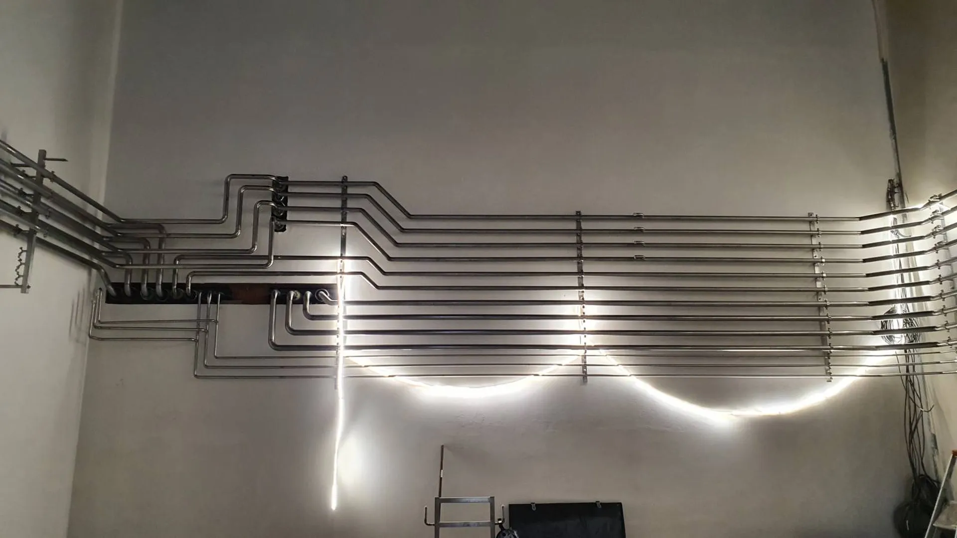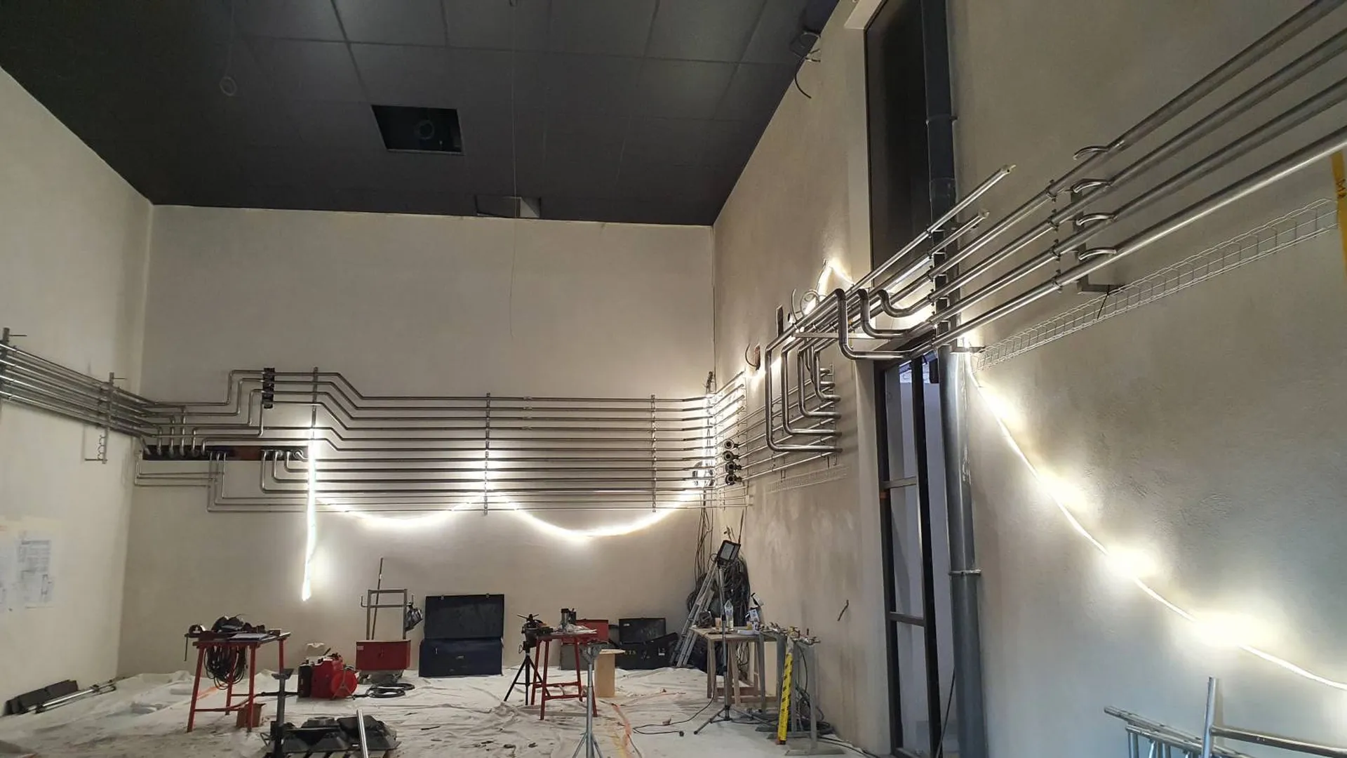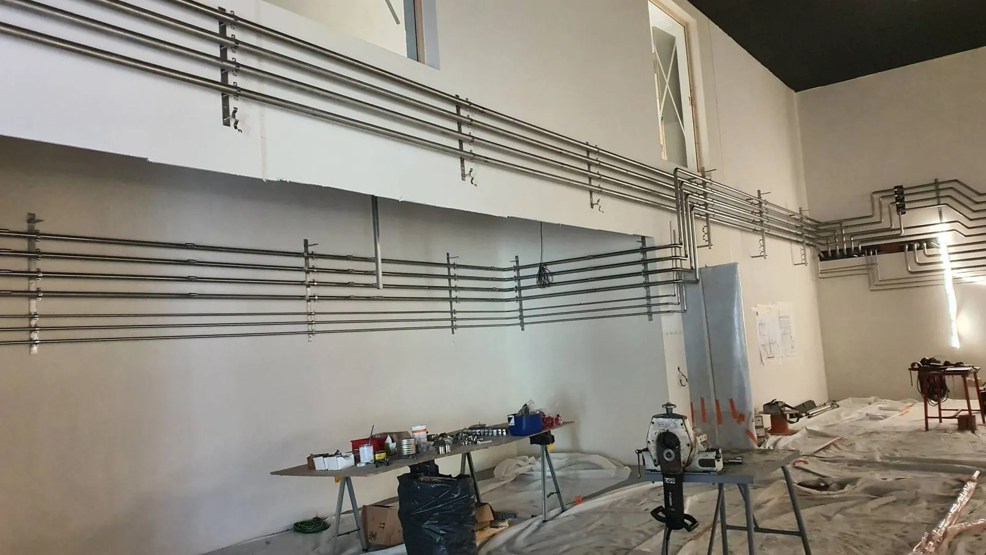 L'objectif du projet était de pouvoir réaliser plusieurs tuyauteries utilités et vinicoles dans la salle microvinification avec une implantation optimale.