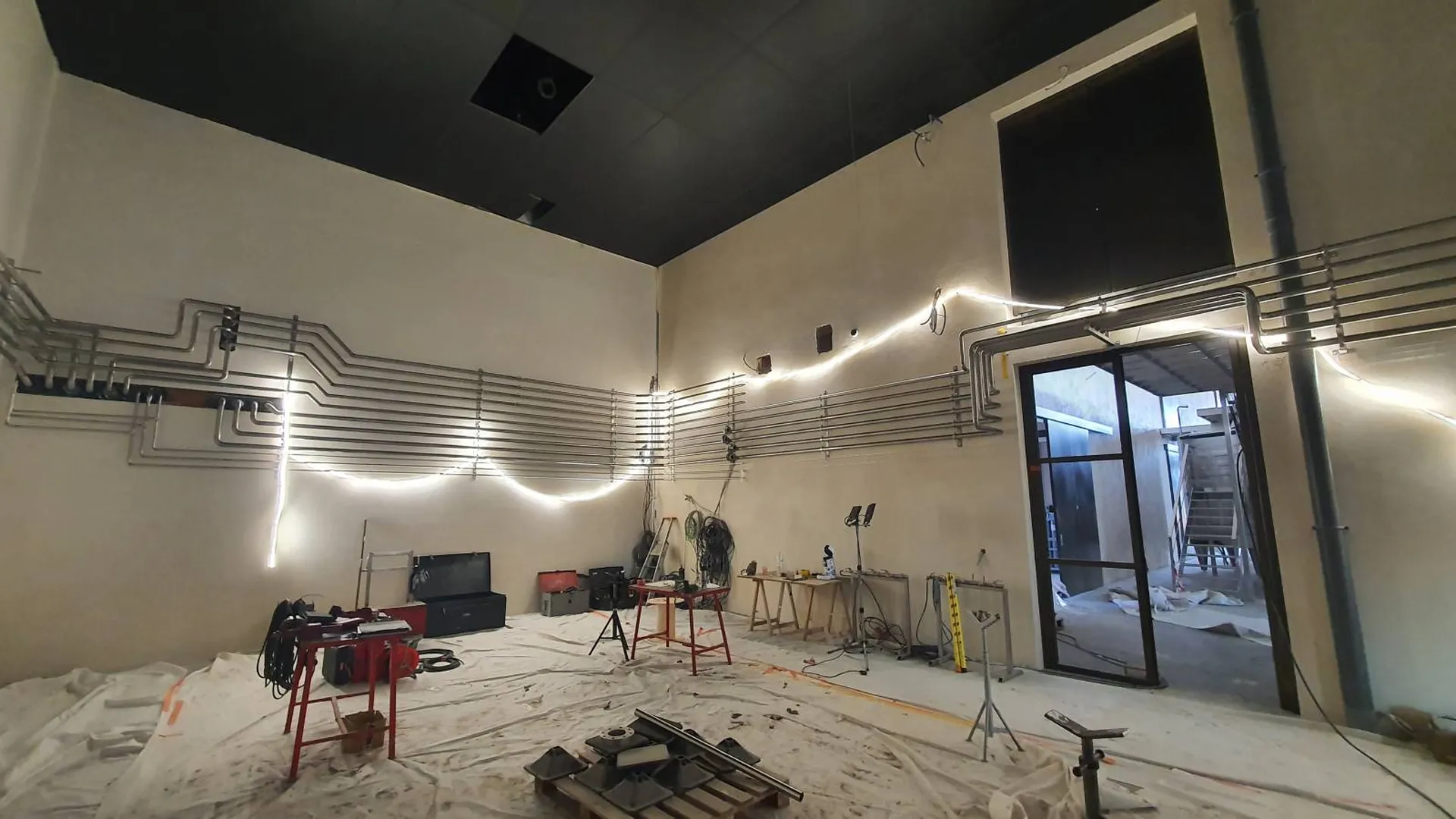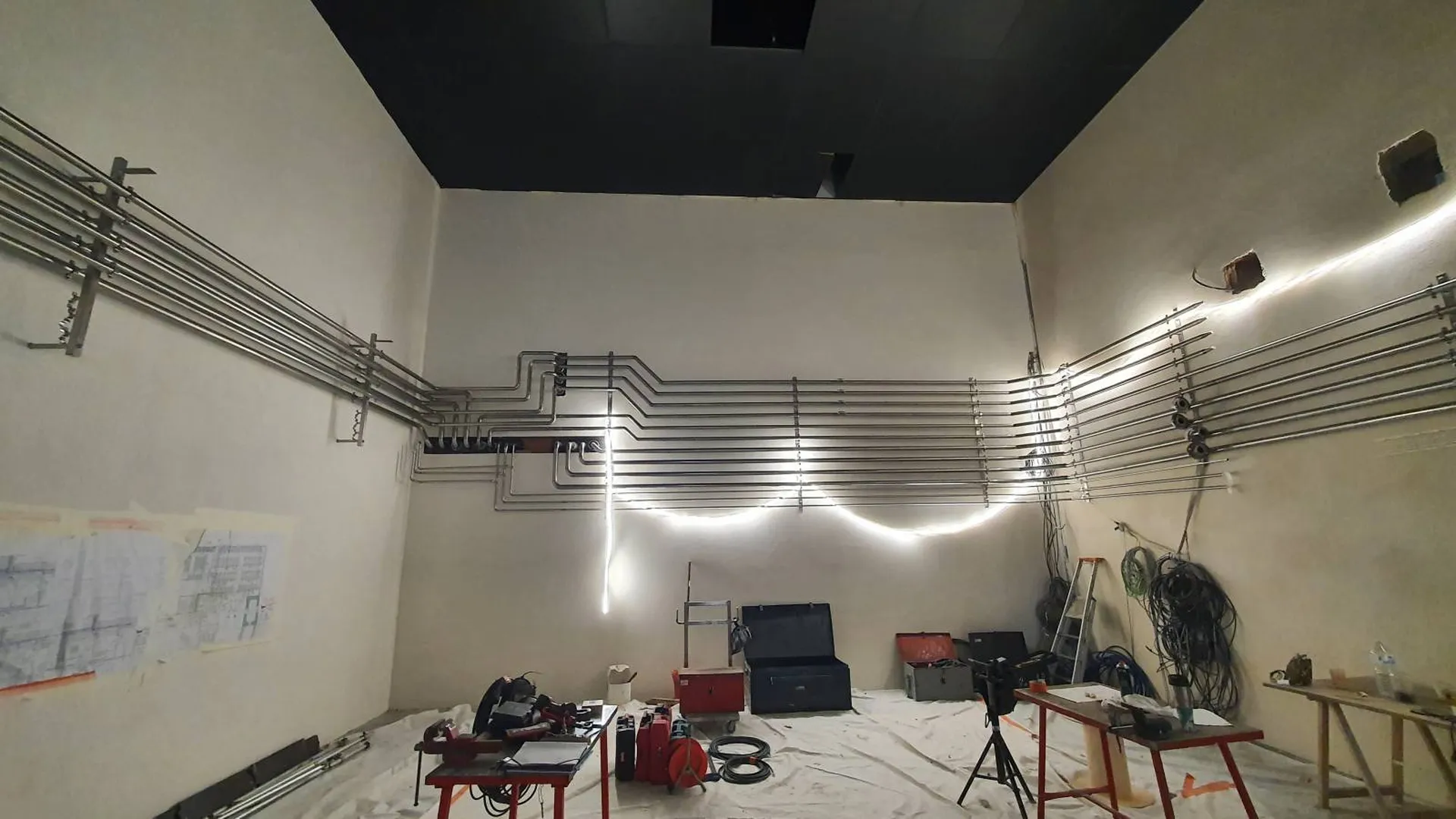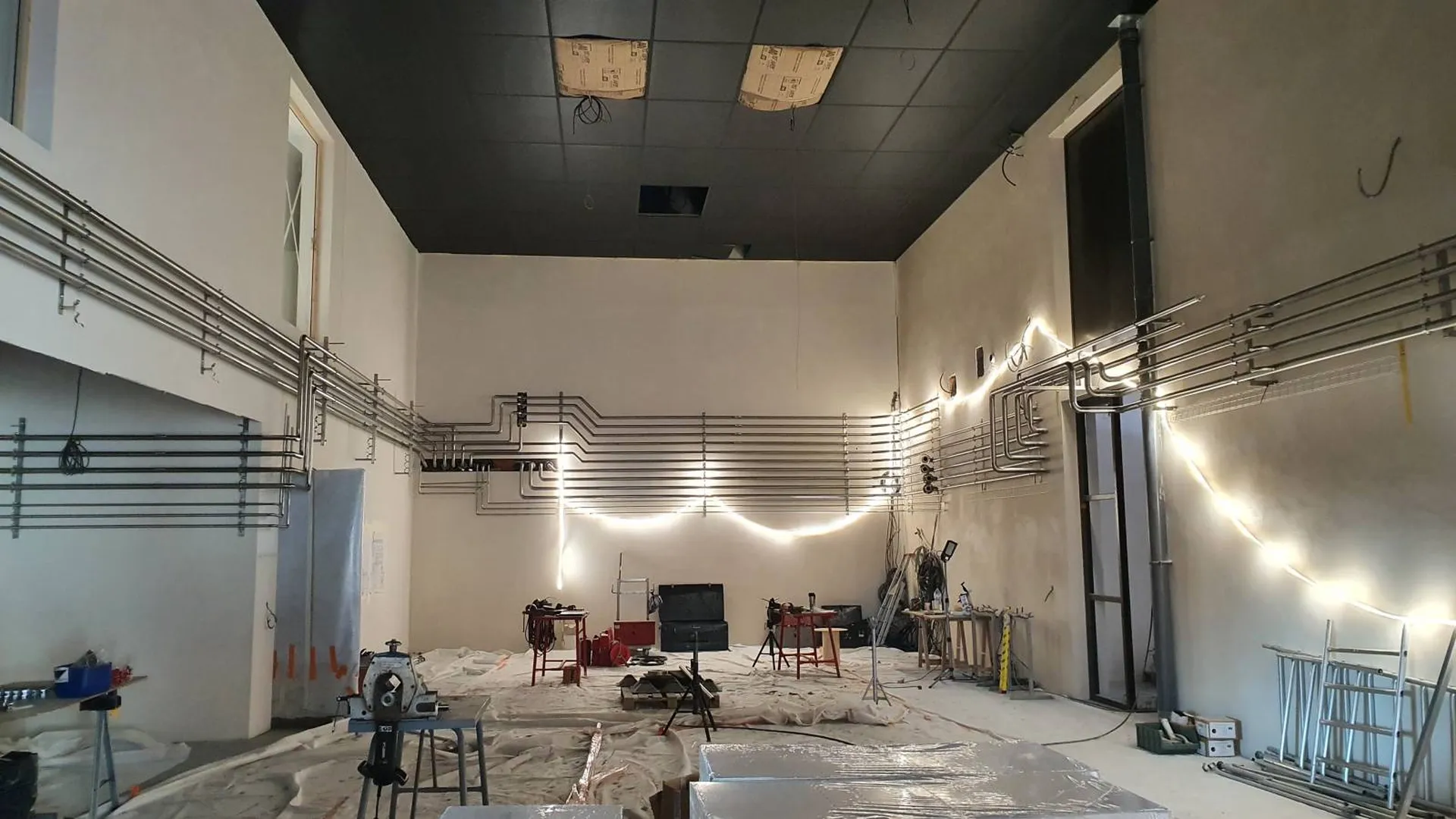 L'objectif du projet était de pouvoir réaliser plusieurs tuyauteries utilités et vinicoles dans la salle microvinification avec une implantation optimale.