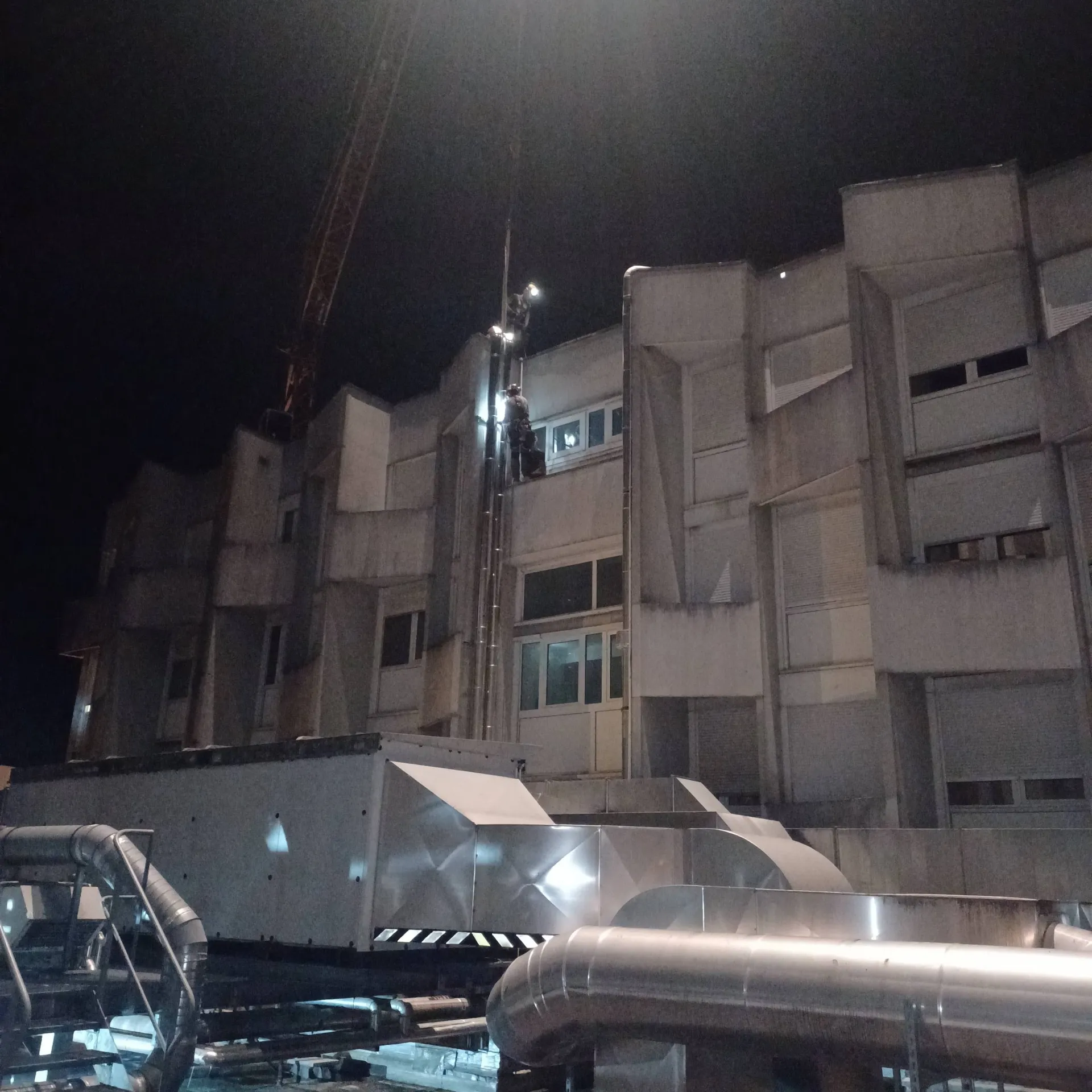 Toutes les manutentions ont eu lieu de nuit, ainsi que le raccordement des tubes verticaux par les cordistes.