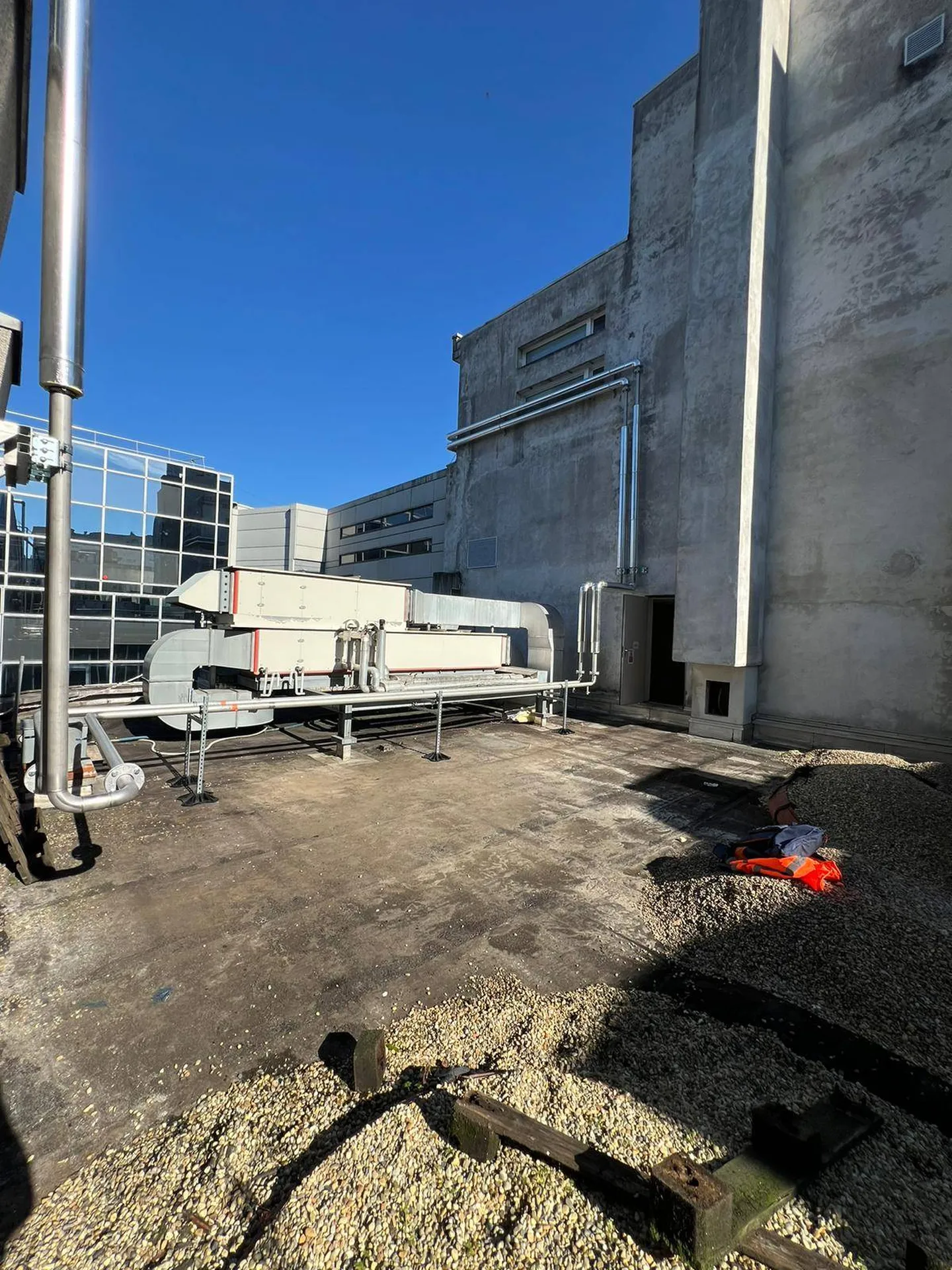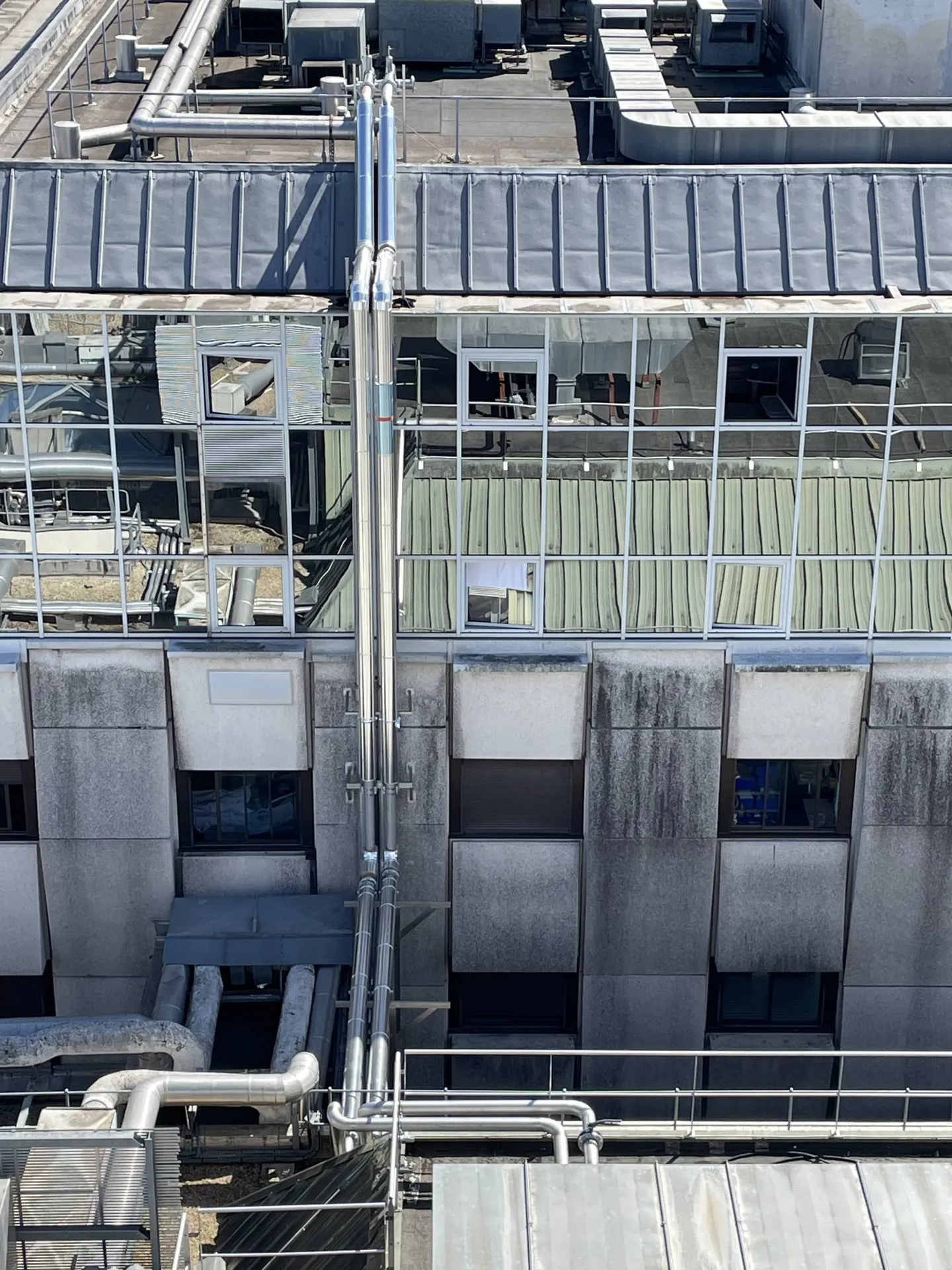 GTS pour sa part a raccordé les tubes horizontaux alimentant les chaufferies sur le toit des bâtiments. Afin de limiter au maximum le temps de travail sur chantier, des raccords par brides ont systématiquement été utilisés.