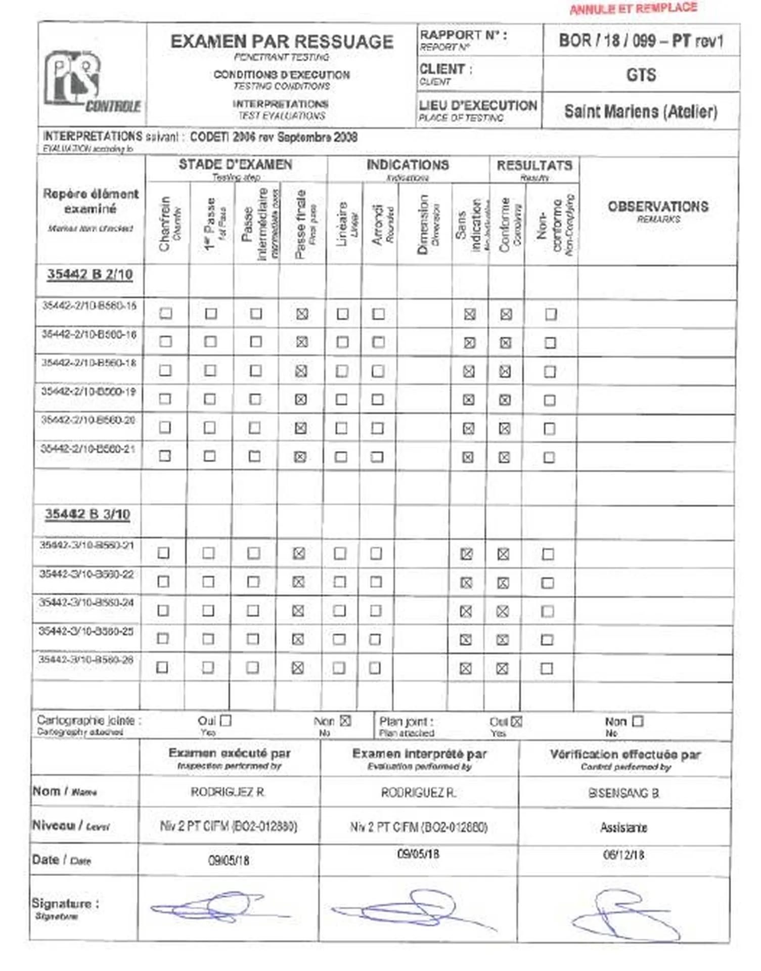- Les PV de contrôles non destructif ;